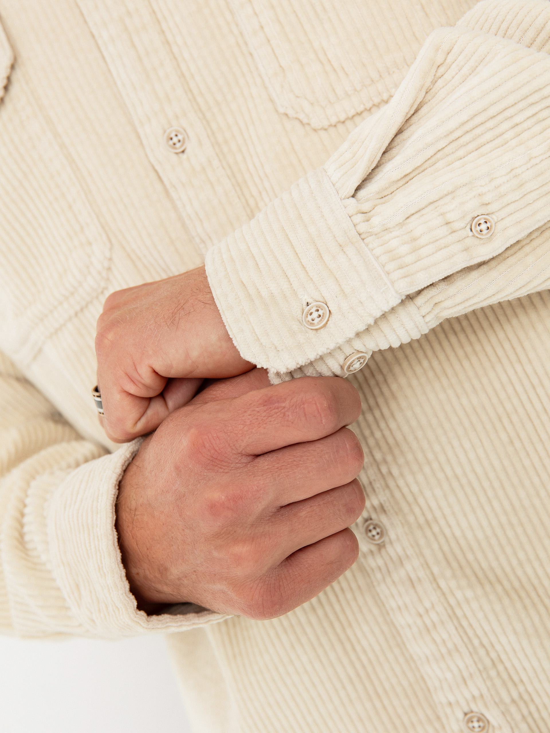 • Ризата Bubble Cord е идеалният избор за есента, изработена от широк органичен велур. Тази материя пасва идеално на есенното време. Ризата е с цяла платка с копчета и два джоба с копчета на гърдите за отличителен стил. Продуктът е веган и е екологично чист.