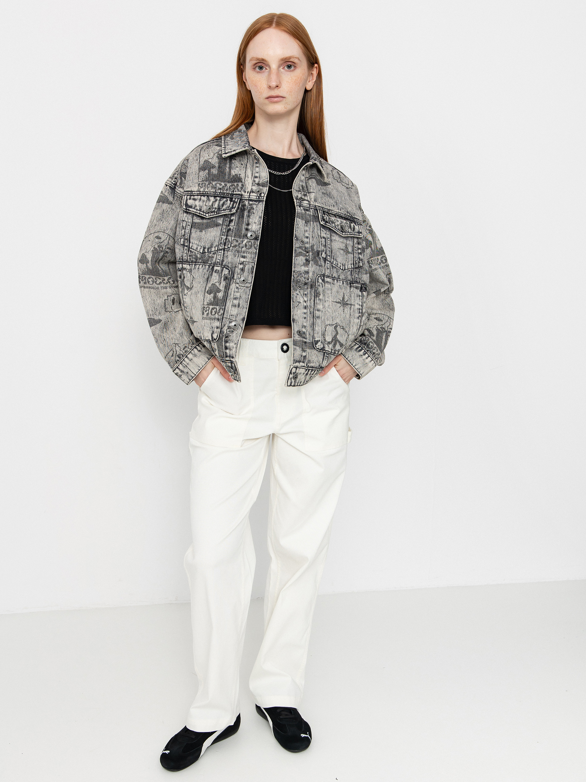 • Леко дънково яке в стил "тракер" със свободна кройка и дължина до талията. Изработено е от лек деним, има практични джобове и оригинален принт на Филип Ригалски, който му придава уникален характер.