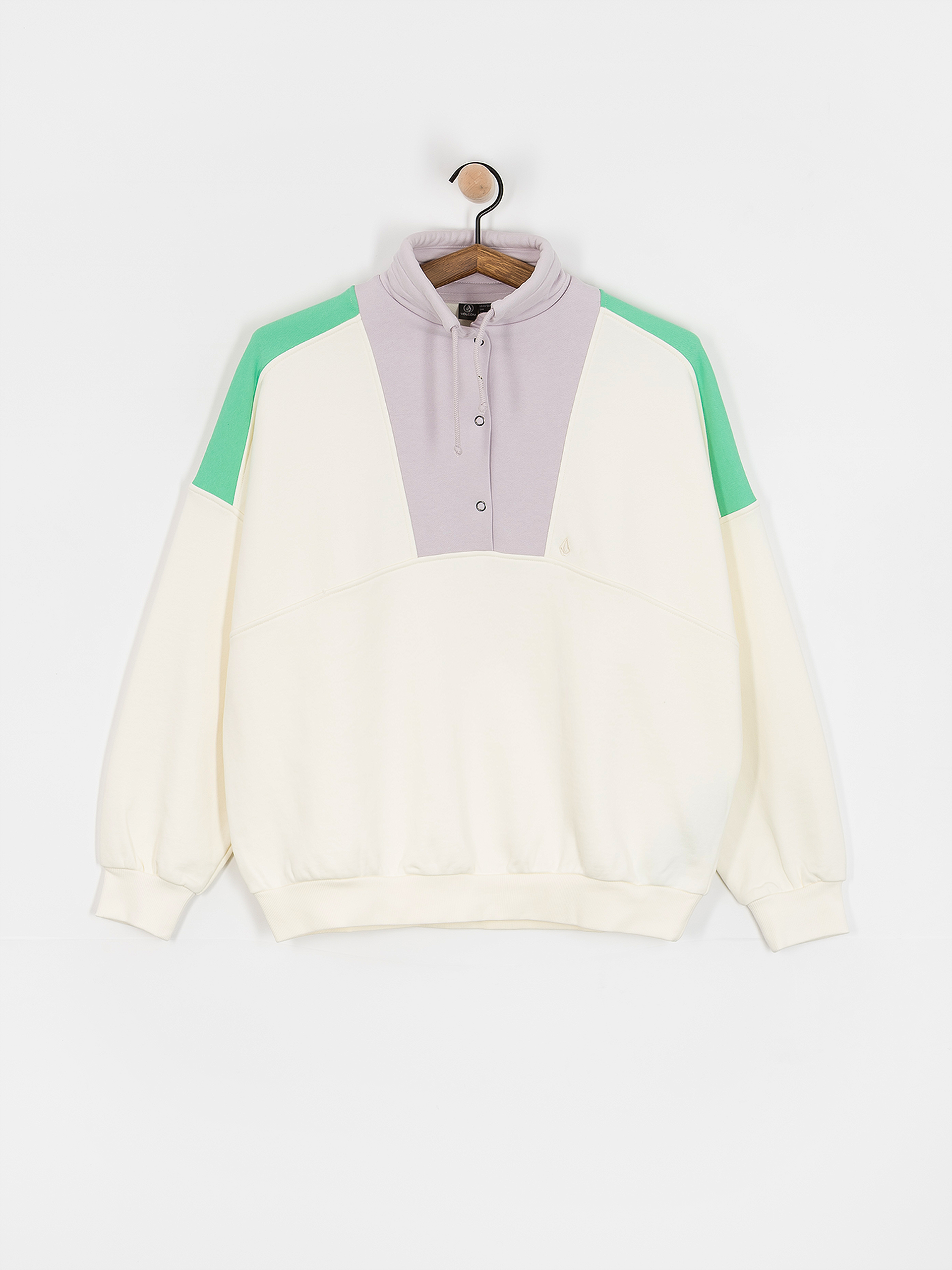 • Дамски поларен суитшърт в стил 80-те години, съчетаващ удобство и модерен външен вид. Разполага с pó³ цип с метални копчета, регулируема оребрена зона на врата и бродирано лого на Volcom на гърдите.