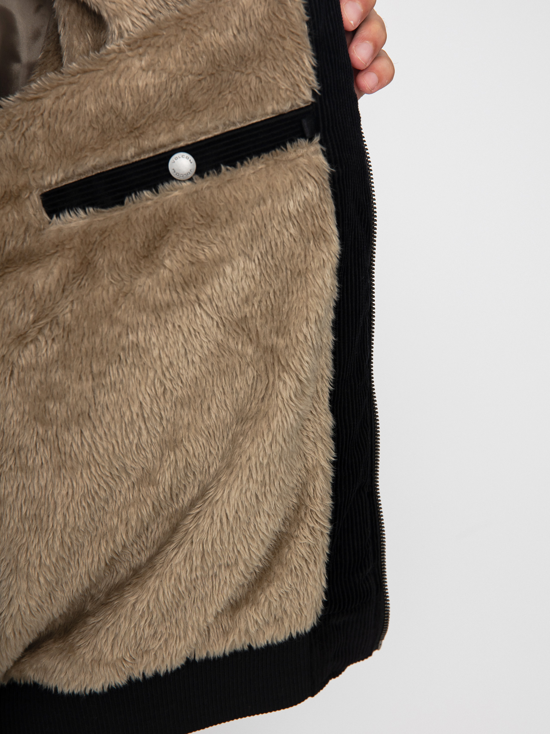 • Мъжко яке бомбър от велур със свободна кройка и дължина до талията, завършено с оребрени маншети и подгъв. Яките ръкави са с карирана шарка, а на гърдите има нашивка с логото на Volcom. Изолираната с изкуствена кожа вътрешна част осигурява комфорт през студените дни. Якето има и вътрешен джоб.