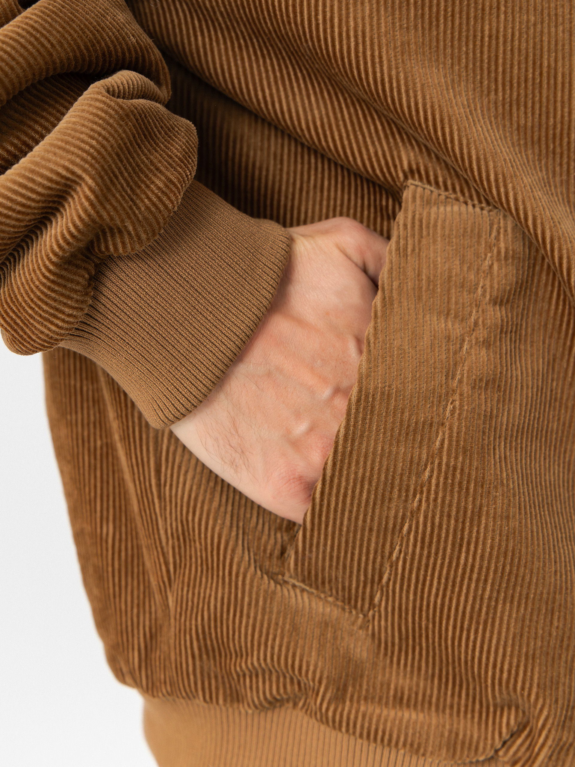 • Мъжко яке бомбър от велур със свободна кройка и дължина до талията, завършено с оребрени маншети и подгъв. Яките ръкави са с карирана шарка, а на гърдите има нашивка с логото на Volcom. Изолираната с изкуствена кожа вътрешна част осигурява комфорт през студените дни. Якето има и вътрешен джоб.