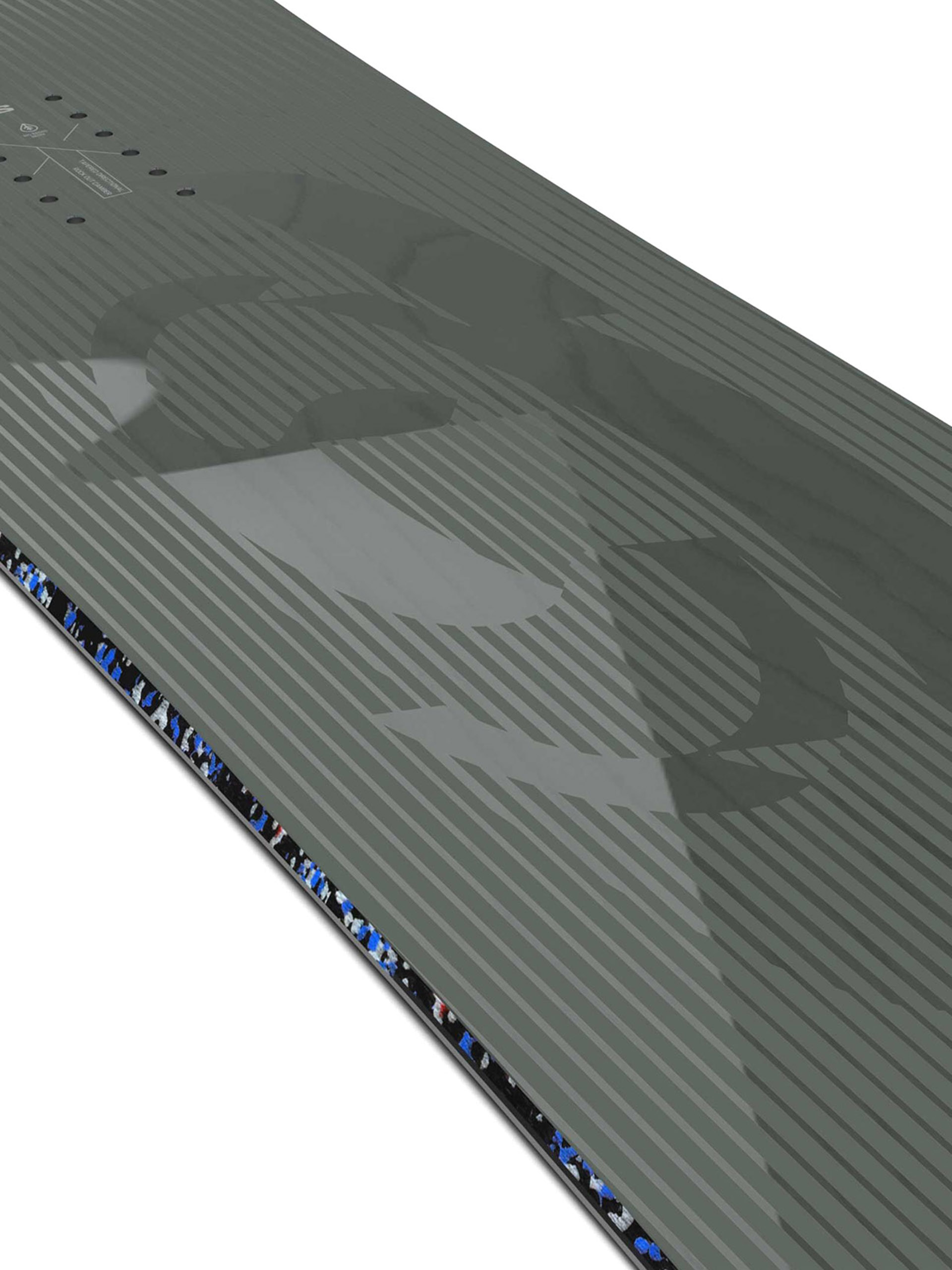 • ФОРМА: Насочена, тапицирана- Опашката на дъската е малко по-тясна от преднатаóчаст (с 2–20 мм). Това улеснява започването на завоите и подобрява преместването в по-дълбок сняг, без да се жертва оптималното задържане на ръба върху твърда настилка.