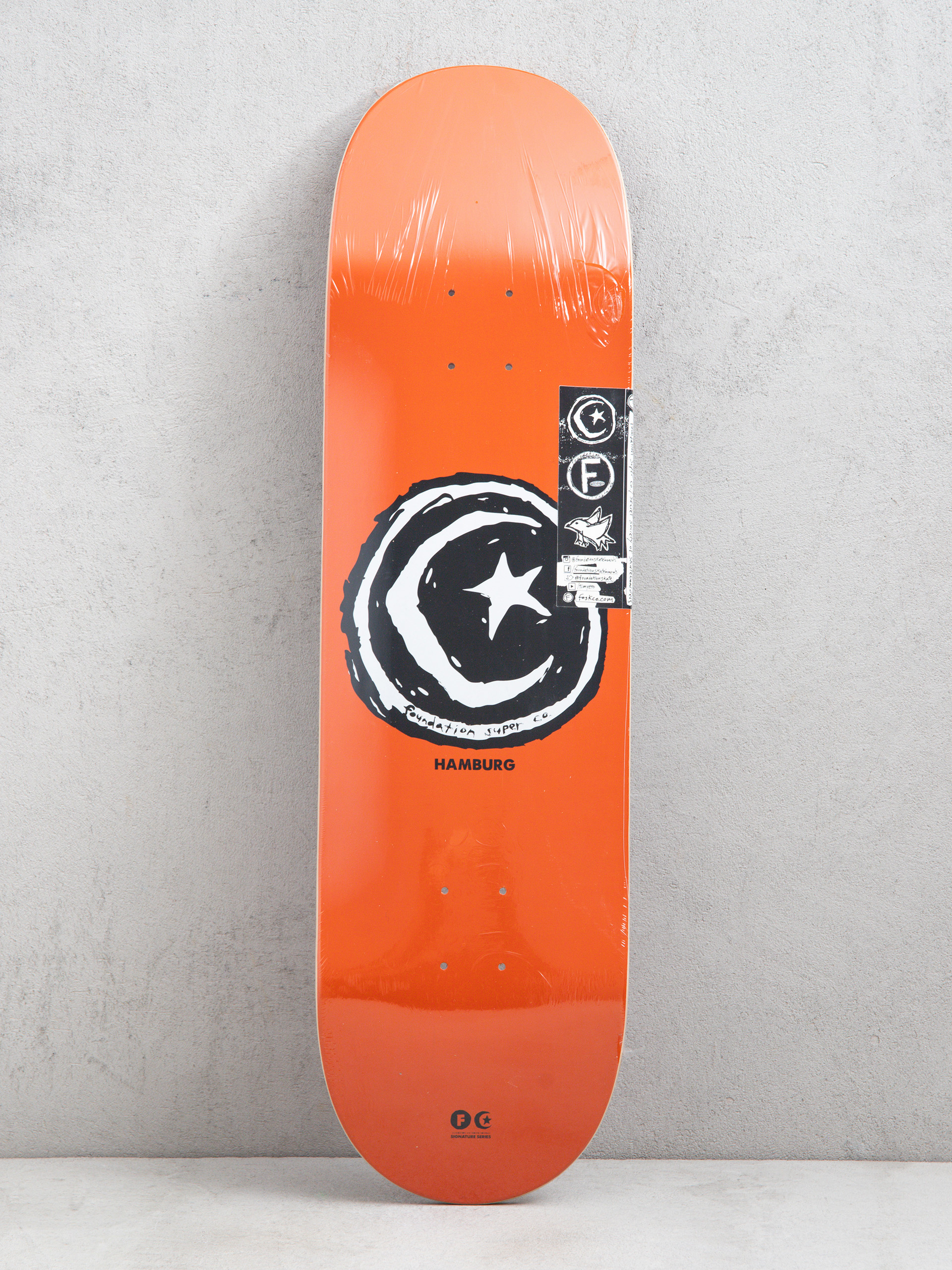 • Foundation Hamburg Signature е професионалният модел на Райън Хамбург в характерния стил Foundation. Тази палуба осигурява изключителна стабилност и комфорт, идеална за скейтъри които предпочитат по-голяма платформа за приземяване, купи или по-бързо каране. Класическата 7-слойна кленова конструкция осигурява издръжливост, твърдост и солиден поп, а графиките Star & Moon придават на дъската уникално, атмосферно усещане.