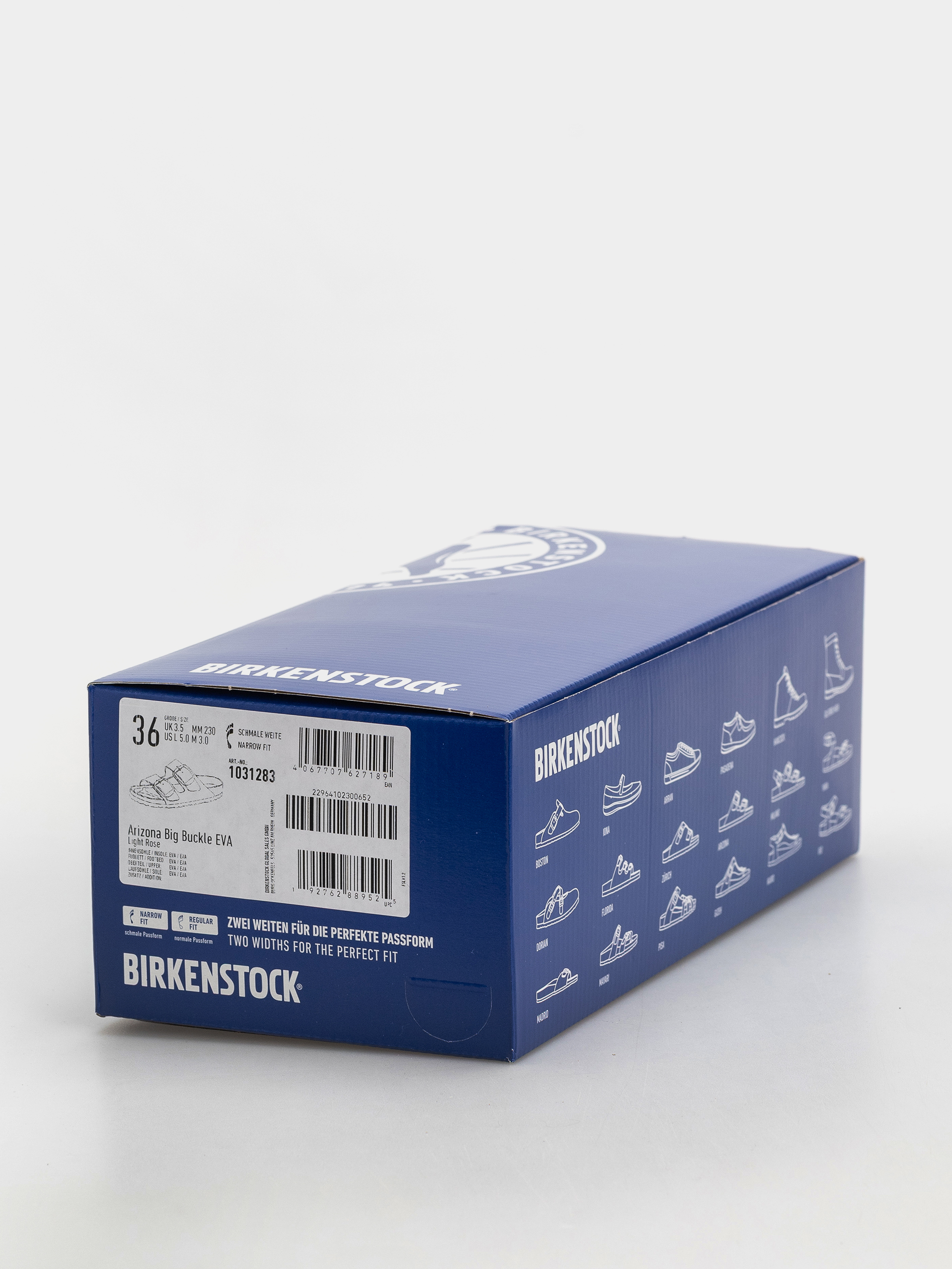 • Birkenstock Arizona Big Buckle EVA Narrow е лека, водоустойчива джапанка, изработена от гъвкава EVA пяна и снабдена с характерната за Birkenstock ортопедична стелка. Профилирането поддържа стъпалото в пет ключови точки, като отчита надлъжната плоскост, напречната плоскост и естественото разположение на пръстите. Моделът се регулира в областта на подбедрицата за стабилно и удобно прилягане. Arizona Big Buckle EVA съчетава емблематичен дизайн с функционалност - идеален за ежедневно носене, басейн, плаж и летен стайлинг.